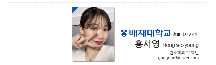 안녕하세요! 배재대학교 홍보대사 23기 홍소연입니다.:)
