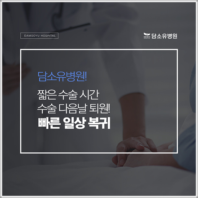 급속한 일상생활 회복이 가능하여 본원은 외과전문으로서 해당 진료에 가장 적합하며 국내외 저명한 학회의 초청을 받아 강연하고 국제논문 SCI 26편을 게재하고 있습니다. 또한 빠른 일상의 환자들을 위해 원스톱 원데이 시스템, 즉 당일 진료와 수술, 그리고 당일 퇴원으로 진행되기 때문에 신속하게 일반적인 일상생활로 돌아갈 수 있도록 도와드리고 있습니다.