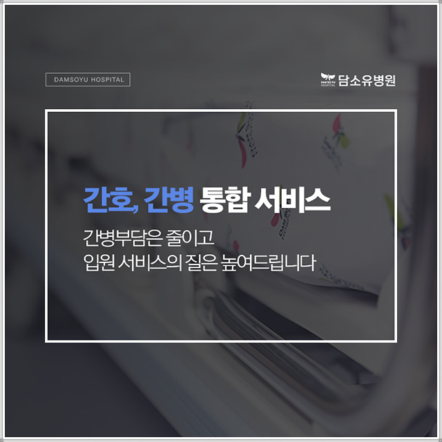 환자의 부담을 덜어주며, 탈장수술병원 본원은 간호, 간병통합서비스를 제공하며, 보호자나 개인 간병인 없이 전문교육을 받은 간호인력으로 24시간 환자를 돌보고 있어 입원서비스의 질을 높이고 간병비의 부담을 덜어드리고 있습니다. 특화된 장점이라면 회복까지 1:1 전담 간호팀을 구성하기 때문에 개개인에게 집중적으로 관리할 수 있다는 점입니다.