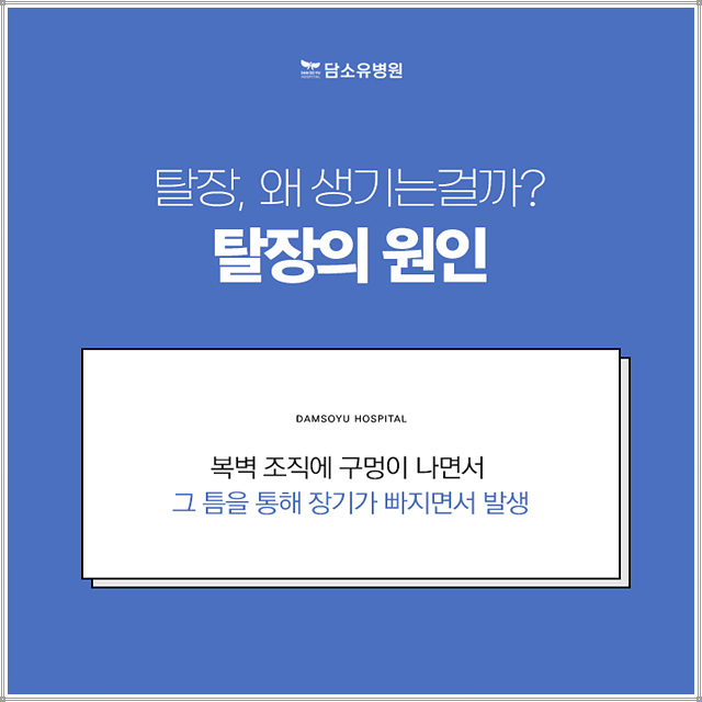 여러 가지 원인으로 발생 원인으로는 선천적으로 나타날 수 있지만 주로 후천적인 원인에 의해 발생하는 질환으로 복압이 높아지는 반면 복벽은 약해지면서 발생합니다. 무거운 것을 많이 들거나 오랫동안 기침을 하거나 변비가 있는 사람의 경우는 변을 볼 때 힘을 많이 주면 복압이 높아져 질환으로 이어질 수 있습니다. 선천적인 원인에 의해 서혜관이 막혀 태어나는 것이 아니라 태어날 때 열린 공간으로 지방조직과 창자가 끼여 증상이 나타납니다. 후천적으로 발생하는 경우 막혔다가 다시 나이가 들면서 틈이 생기며 그 틈으로 소장, 충수, 여성의 경우 난소가 끼어들어 발생합니다.