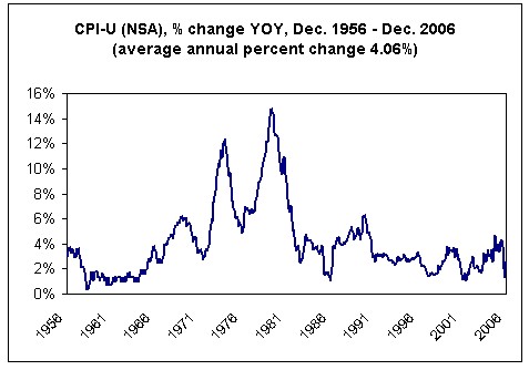 http://www.inflation-linked.com/historical cpi.asp와 같은 관점에서 물가를 보면 미국의 소비자물가지수[CPI]를 보면 주로 상품의 물가가 보이는데 앞서 고금리의 정점인 80년대 초반경에 오히려 더 많이 오른 것으로 보이며 저금리 시대에는 오히려 더 많이 오른 것으로 보입니다.