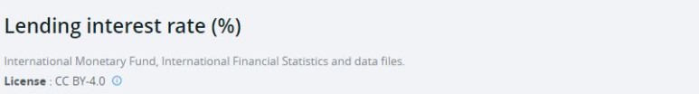 https://data.worldbank.org /indicator /NY.GDP.PCAP.CD?name_desc=falsehtps://data.worldbank.org/indicator/FR.INR.LEND?name_desc=false 사실 금리에 관한 자료는 세계적으로 구하기 어려운데 104개 정도밖에 없는 국가나 지역에 절반 이상의 값이 없고 구멍이 뚫려있기는 하지만 대체로 손에 넣으면 고금리의 나라가 잘 살고 있다고는 생각하기 어렵고, 또 그곳의 물가가 잘 살고 있다고는 생각하기 힘들어서 [행복한 곳]