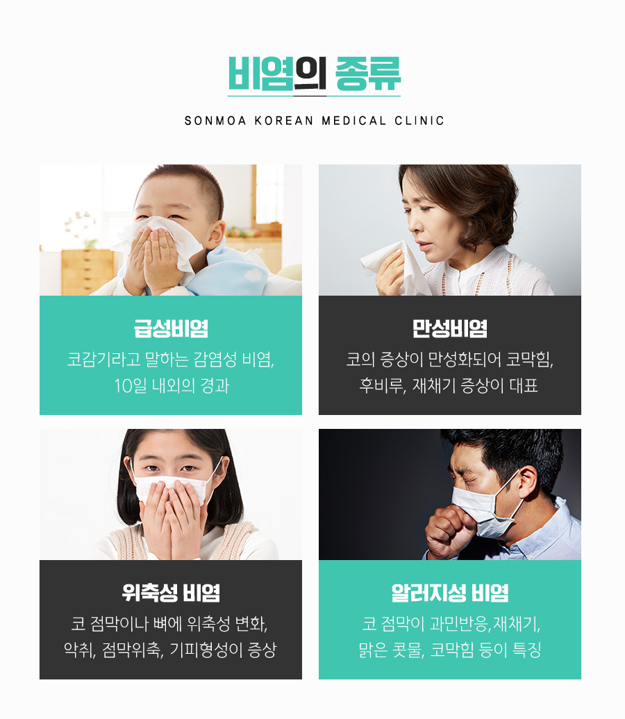 질환을 앓고 계신 분들 대부분이 코 점막이 심하게 부어 있는데요. 코 점막이 부풀어 오른 상태에서 비강을 전부 막고 있는 상황이 발생했고, 코로 숨을 쉬는 것 자체가 힘들어지는 상황에 처하기도 했습니다. 점막이 부은 상태가 아닌 상황에서 코가 막히는 증상을 보이는 경우라면 비강 안쪽에 물집이 생기거나 축농증이 원인인 것도 많았습니다. 특히 아침에 일어나면 평소보다 많은 콧물이 나올 경우 알레르기성이 아닌지 의심해 볼 필요가 있었습니다. 단순히 코감기로 진단된 상황에서 장시간 호전되지 않으면 비염으로 발달할 수 있기 때문에 증상을 정확하게 진단하여 원인을 찾고 대구축농증 배농요법을 통해 적극적으로 개선해야 했습니다.