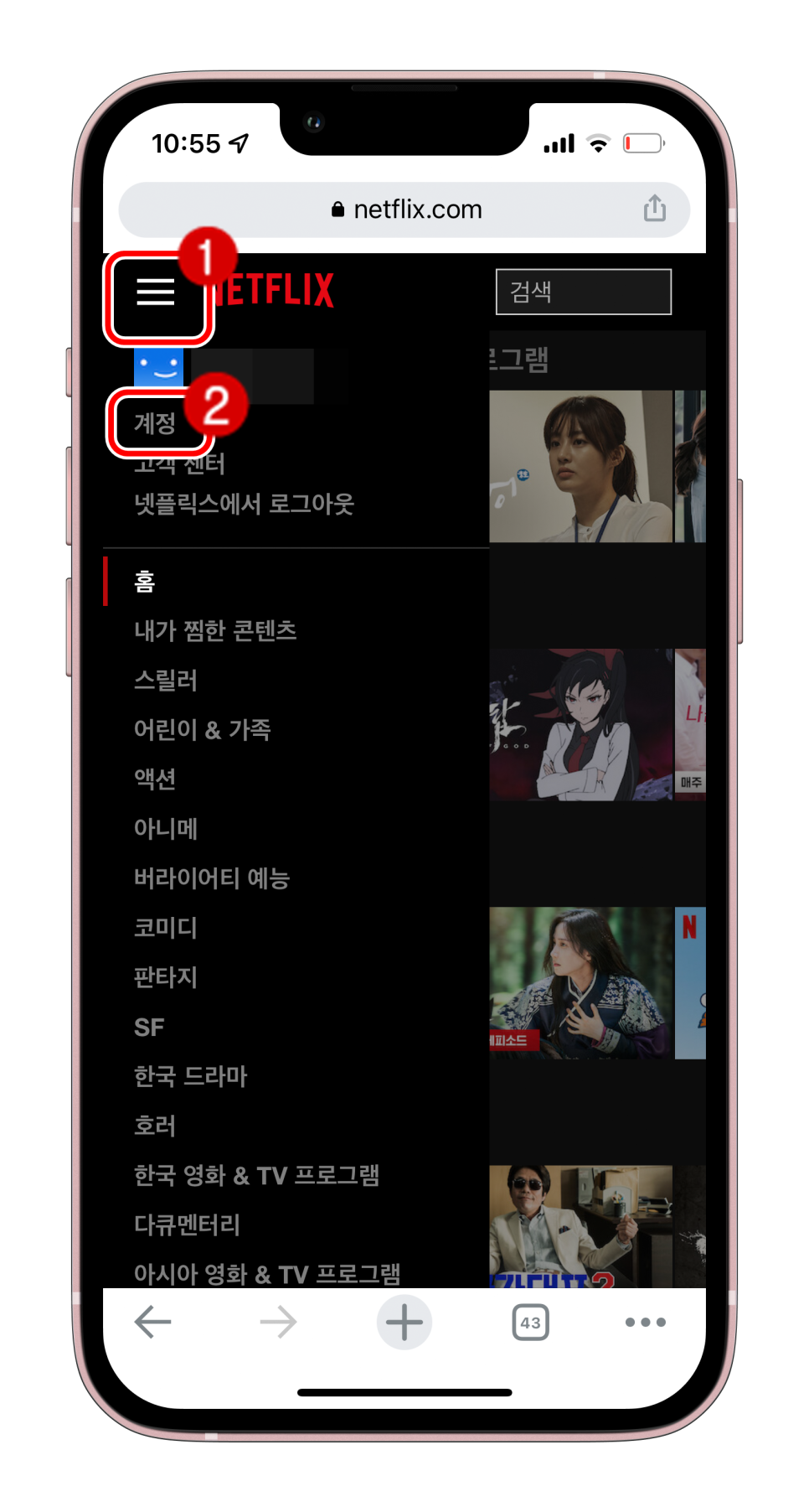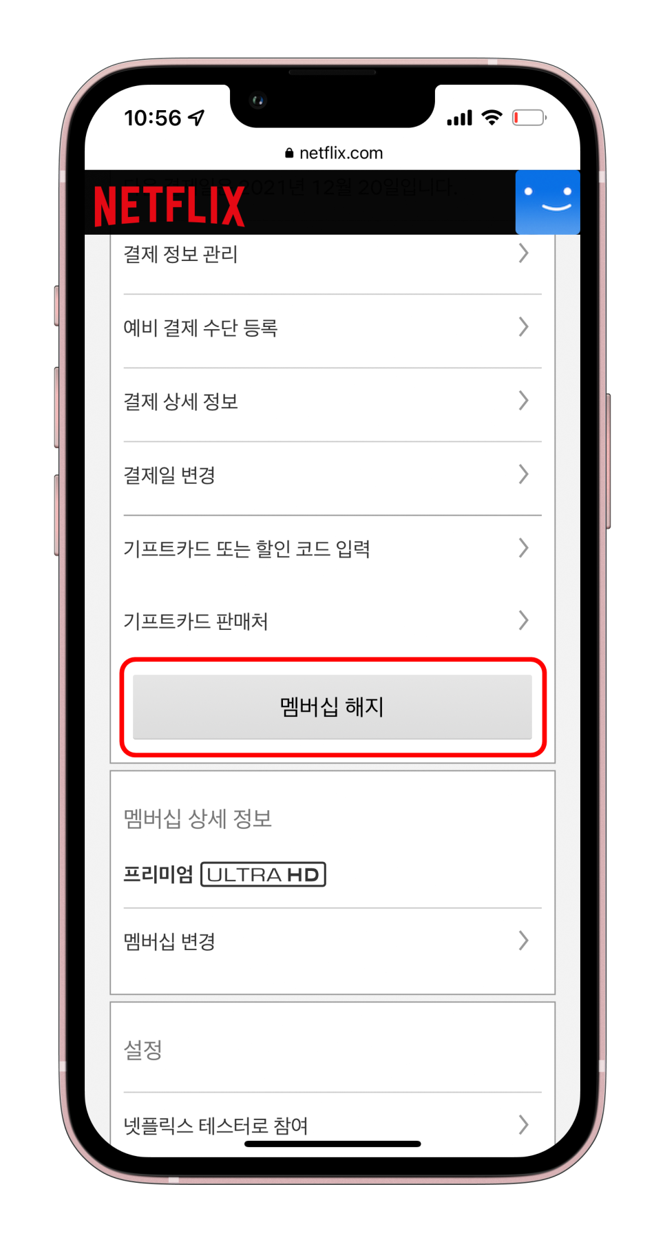 아이폰 사용자는 넷플릭스 앱에서 해지할 수 없습니다 사파리, 크롬 등의 인터넷 브라우저를 부팅하여 주소창에 netflix.com를 직접 입력하고 웹 브라우저 형태로 netflix에 접속하세요.