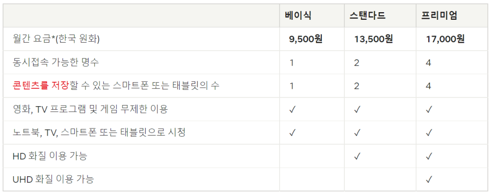 새롭게 적용되는 가격을 보면, 베이직은 보합으로 9,500원, 스탠다드는 1,500원 인상(12.5%)된 13,500원, 프리미엄은 2,500원 인상(17.5%)된 17,000원인 것을 알 수 있습니다. 디즈니플러스나 애플TV 등과의 경쟁을 앞두고 가격을 올리는 것은 이상하지만 한편으로는 콘텐츠에 대한 강한 자신감이라고 평가할 수도 있습니다.