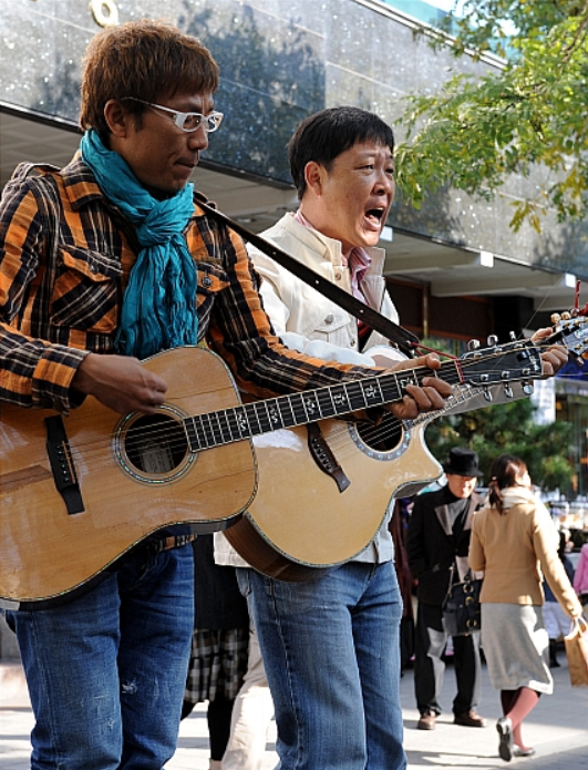 1994년 MBC 공채 5기 개그맨 김철민(본명 김철순).본업은 개그맨인데 개그맨 이미지보다 대학로 마로니에 공원 버스킹의 사실상 원조 이미지가 강해요.실제로 1980년대 후반부터 마로니에공원에서 기타 하나만으로 버스킹 공연을 해왔고 김형곤의 눈에 띄어 연예계에 입문했죠.마로니에 공원에서 버스킹 코미디 공연을 할 때는 동료 개그맨 윤효상 씨와