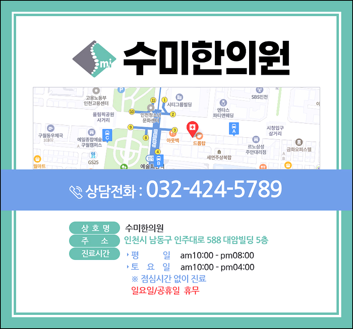 한의원에서는 개인 맞춤형 치유요법을 통해 도와드리고 있습니다. 환자마다 원인과 증상이 다르기 때문에 정확한 조사를 위해서는 한의사와 충분한 상담을 하는 것이 좋습니다. 그 후 그에 맞는 치유 요법으로 증상을 개선해 보시기 바랍니다.