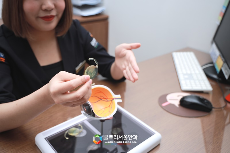다만 개선 전에 충분한 진단이 이뤄져야 각자에게 적합한 치료 방향을 정해나갈 수 있습니다.같은 증상이라도 사람마다 증상의 진행 속도나 정도에 차이가 있고 수정체의 혼탁 범위에 따라 구체적인 치료 방법도 달라질 수 있으므로 반드시 사전에 체계적인 검사를 거쳐 수정체와 각막, 망막을 두루 살펴야 했습니다. 치료의 재현성과 성공률을 높이기 위해서는 70가지 이상의 다차원 검사를 먼저 받은 후 의료진을 통해 충분한 상담까지 거쳐야 하며, 시간적 여유가 없는 경우에도 만족스러운 결과를 원한다면 여유시간을 오래 가진 상태에서 내원할 것을 권장했고, 이에 따라 상세한 렌즈 종류까지 선택할 수 있었습니다.