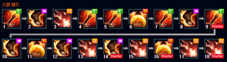 스킬 트리는 다른 건 없어요 EWQ 순서대로 마스터하여 쿨한 느낌이 들고, E마스터가 되면 기다리는 타임 없이 계속 E를 붙일 수 있을 것입니다. 제가 신경써야 될 것은 궁극기를 잘 쓰면 사기이고 잘못하면 바보가 되고 마는 무적이지만 꼭 죽음이 닥쳤을 때 걸려고 하는 분들이 있습니다.가장 좋은 것은 적의 기술이 쏟아질 때 사용해 피해를 막는 것입니다.