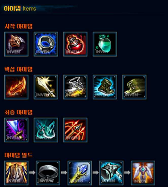 또 다른 장점으로는 다양한 아이템 빌드를 들 수 있는데, AP와 AD가 섞여 있고 히라타계 하이브리드 챔피언이기 때문에 태어날 때부터 아이템 선택의 폭이 매우 넓습니다. 아군과 상대의 조합에 따라 유연한 템플릿을 진행할 수 있으며, 다양한 템플릿 발명으로 다양하게 굴릴 수 있습니다.