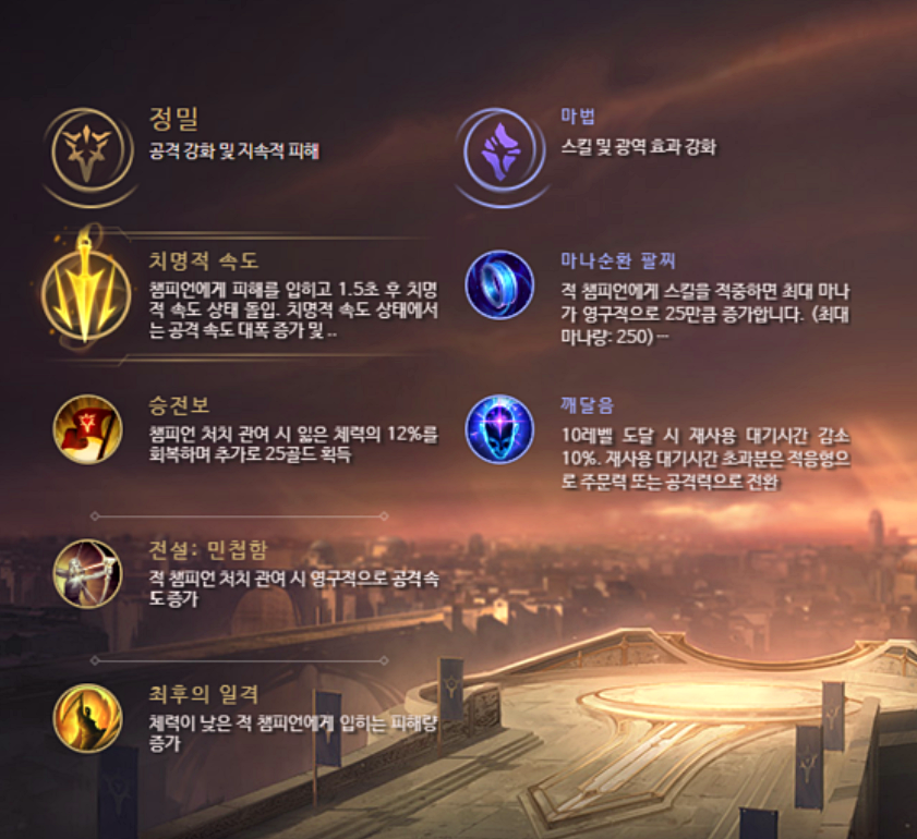 일단 룬을 보시면 꿩다발을 들고 승전보 신속성, 마지막 일격을 보조룬으로 삼아 마법에 깨달음을 꼭 얻으시기 바랍니다.깨달음을 얻거나 순환이 아니면 이 속을 올리는 룬을 들으면 좋겠지만 사실 다른 것은 정복자, 집중 공격 모두 불만이지만 꿩의 속력을 들어야만 진정한 불길 속에 나오므로 비속을 올리는 것이 좋습니다.