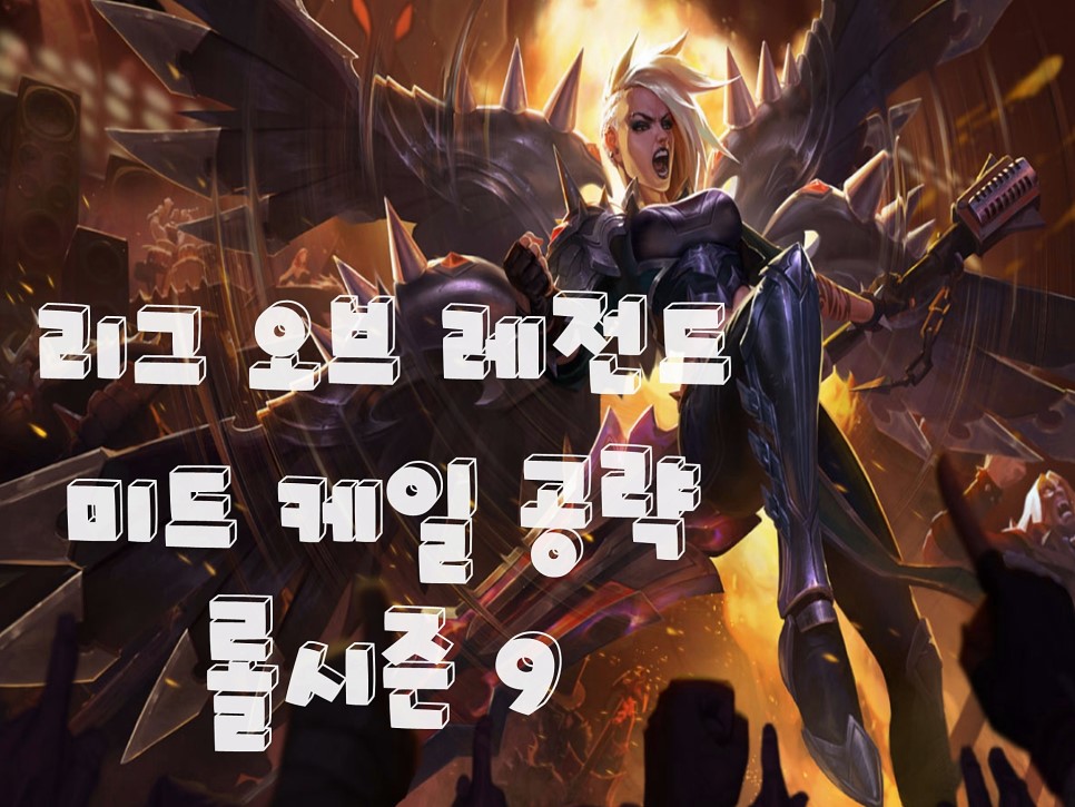 롤 시즌 9 미드케일 공략을 해보겠습니다 먼저 장점과 단점을 살펴보면 뛰어난 후반 캐리 능력을 들 수 있지만, 패시브 덕분에 케일은 성장만 하면 엄청난 캐리력을 갖게 됩니다.총 공격력 + 주문력 혼합 데미지와 추후 고정 데미지까지 추가되어 탱커는 카운터 빌드에 오르기 어려워 광역 딜로 다대다 전투에서도 매우 강합니다. 그것을 또 기본 공격만으로 가할 수 있기 때문에 빗나갈 수도 없고, 마나를 걱정할 필요도 없습니다.