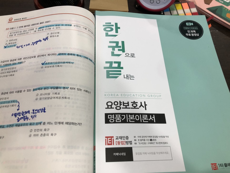 240시간의교육 이수시간을채운후바로요양보호사자격시험에대비하기위한방법을배웠습니다. 가장 소중하게 생각한 것은 교재였습니다!