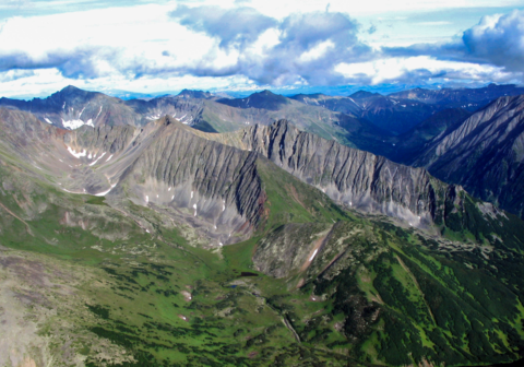 줄지어 있는 대륙의 화산들은 빠른 속도로 풍화하여 지질학적 시간에 걸쳐 대기로부터 이산화탄소를 제거한다. 러시아 캄차카 지방의 화산이 연결된 산맥(화산호). © Tom Gernon, University of Southampton