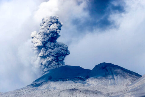 광범위한 화산 사슬이 화산 분출 후 대기 중의 이산화탄소(CO2)를 제거해 지표면 온도를 안정화시키는 역할을 했다는 연구가 나왔다. 2017년 남미 페루에서 분출한 사반카야 화산. © Wiki Commons / Galeria del Ministerio de Defensadel Pe브