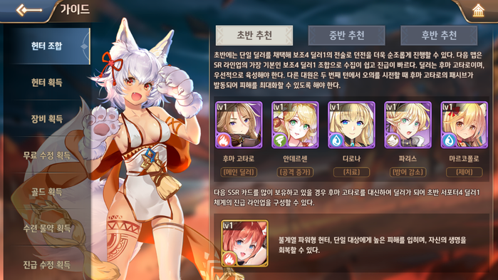 이외에도 로빈 후드, 옥타비아누스를 활용한 바람 속성 메타도 초반에 인기가 있는 만큼 자신의 주력 속성 기반으로 영웅을 모집하면서 세력을 키워나가는 방식을 추천한다.