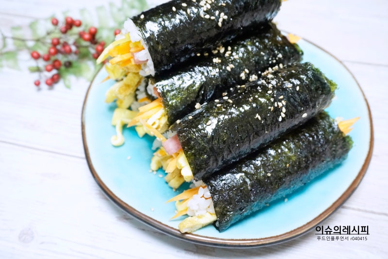 맛있고 간단한 집밥 레시피를 요리해서 소개하는 류이입니다 ‘주말 점심은 더 간단하게’가 요리 모토인데, 그래서 오늘은 꼬맹이 김밥을 만들어봤습니다.김밥은 어떻게 먹어도 맛있지만 팽이김밥으로 만들면 만들기 쉽고 한입에 쏙쏙 들어가 있어서 먹기도 편하고 더 좋더라구요~♡자주 가는 단골 김밥집 선비팽이김밥 스타일로도 해봤어요.