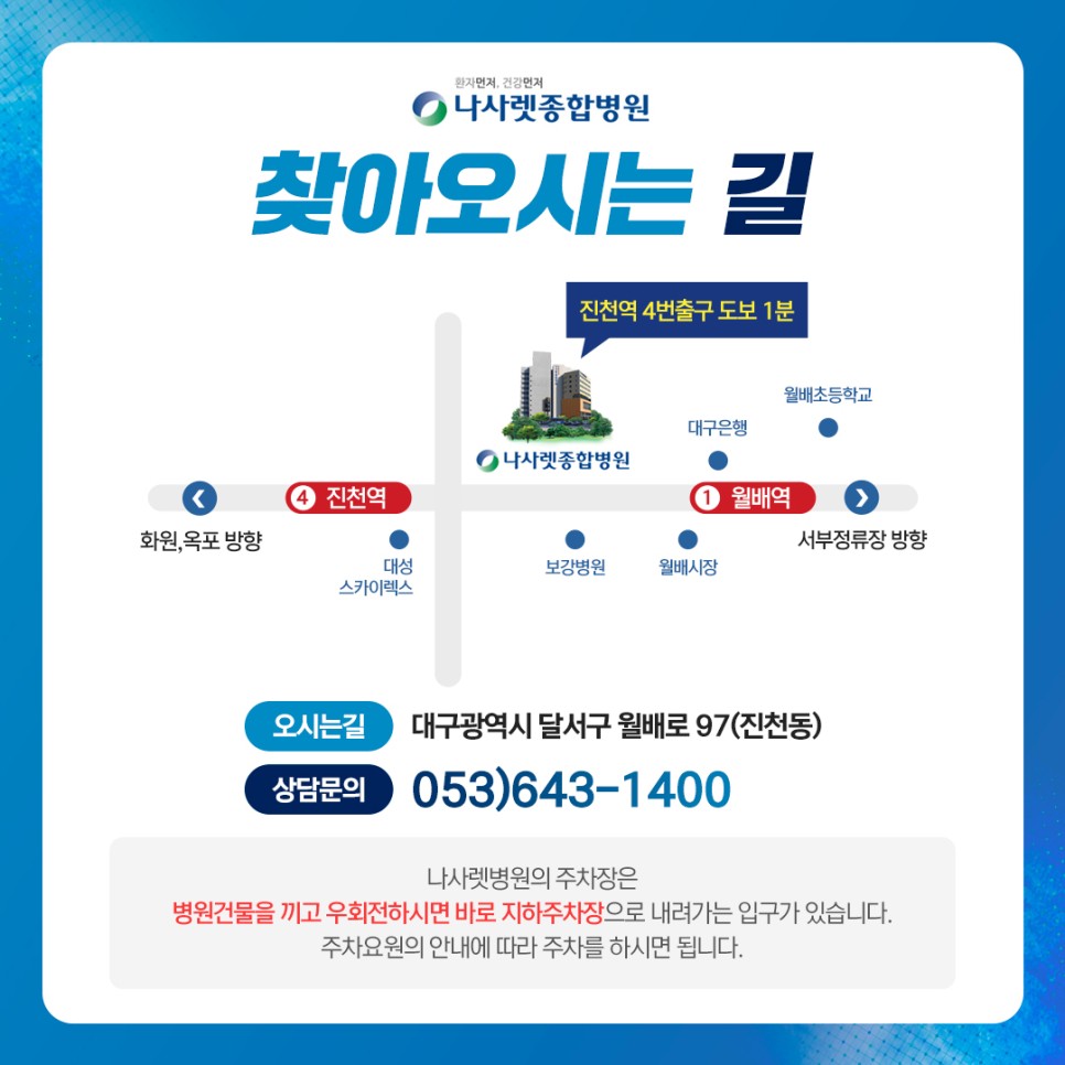 대구광역시 달서구 월배로97 대구 달서구에 위치하며 관절센터, 척추센터, 심장뇌혈관센터, 내시경센터, 종합건강진단센터, 진료문의 nazareth.co.kr