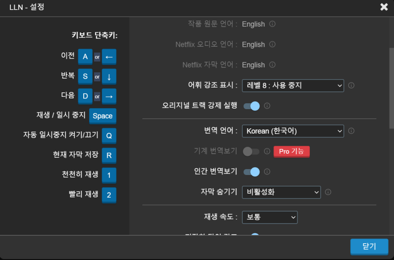 오른쪽 상단에 보시면 추가 메뉴가 있습니다.이게 정말 요청하신 기능인데 특히 영어 공부를 위해서 시청하시는 분들은 주목해주세요.