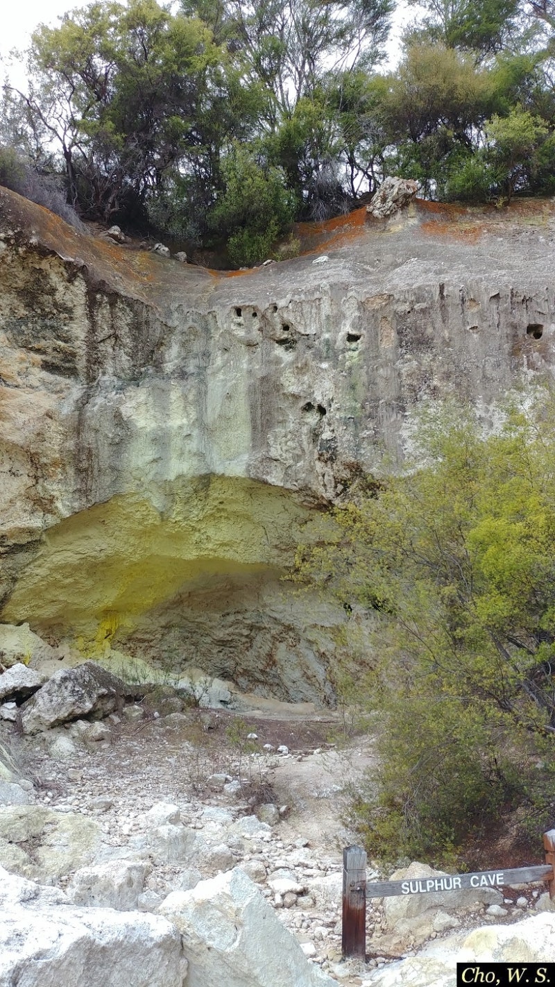 2. Zone volcanique de Rotorua (sud du lac de la Caldera): un cristal jaune a été créé par l”éjection de gaz volcanique.