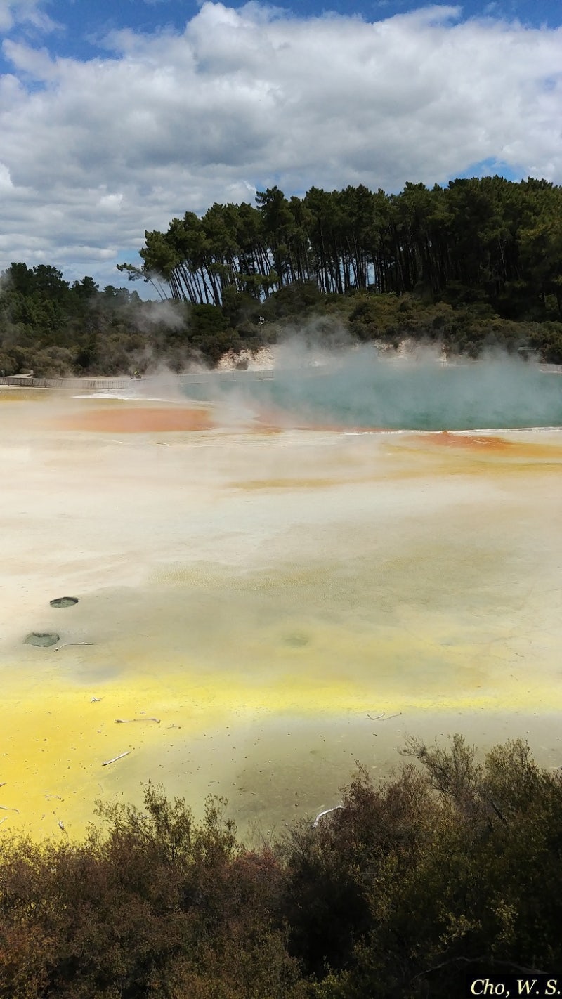 7. Zone volcanique du Wyotaf (Wai O Tapu, au sud du lac Rotorua Caldera): le volcanisme forme des lacs de sources chaudes multicolores.