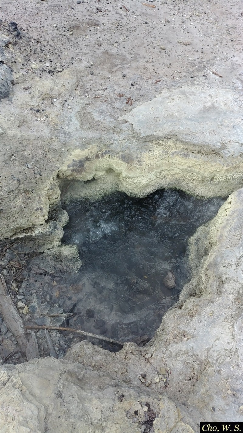 1. Zone volcanique de Rotorua (sud du lac de la Caldeira): l’éjection de gaz volcanique a formé un goulot rond.