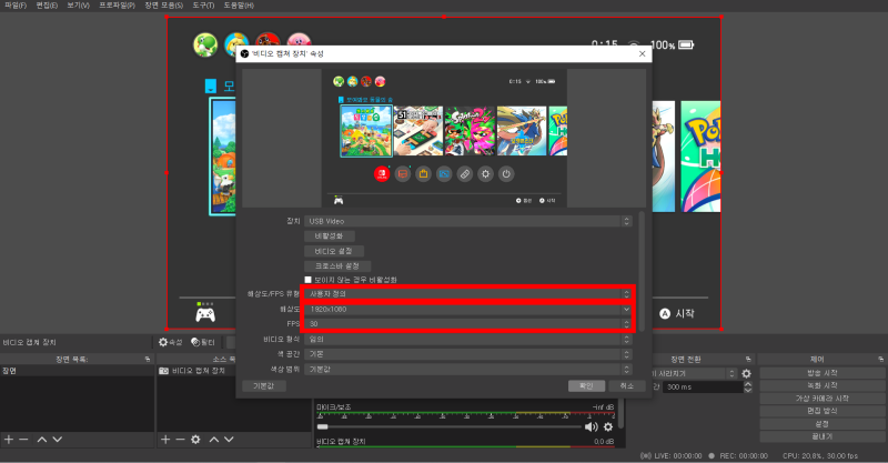 그러면 이런 창이 뜨니 확인 버튼을 누르시면 됩니다.그리고 본격적인 화면 세팅이 시작됩니다.우리는 캡처보드를 통해 스위치 화면을 녹화하기를 원하므로 캡처보드에 해당하는 장치를 선택하십시오.그러면 오른쪽처럼 스위치 화면이 나옵니다.그리고 녹화되는 화면의 해상도와 FPS(초당 프레임)를 설정해 줍니다.이 경우 캡처보드 성능+녹화컴퓨터 성능에 맞게 설정해주세요.내가 산 캡처보드는 4K 30fps가 한계인데 닌텐도 스위치 지원 최대 해상도는 1080p여서 1080p 30fps로 설정했어요.내 노트북에서는 1080p에서도 조금 끊기고 스플래툰 같은 게임을 녹화할 때는 720p로 녹화해요.그리고 오디오 출력 장치 설정에서 커스텀 오디오 장치 사용 체크 박스 클릭 > 캡처 보드에 맞는 오디오 장치를 선택하면 소리가 정상적으로 녹음됩니다.나처럼 원컴을 통해 녹화할 경우에는 컴퓨터를 통해 게임 소리를 들어야 하기 때문에 추가 설정이 필요합니다.오디오 믹서 > 캡처 디바이스의 톱니바퀴 > 오디오 고도 설정 > 비디오 캡처 디바이스의 오디오 감시에서 감시와 출력을 선택합니다.그러면 컴퓨터 스피커로 게임 소리를 들을 수 있습니다. 단, 이 경우 모니터링 소리가 함께 녹음될 수 있으므로 데스크톱 오디오 오디오 믹서를 끄십시오.https://youtu.be/nSUIKEsLf-k 다음은 녹화결과입니다. 그리고 참고용으로 쓴 녹화장비 스펙입니다. 캡처보드 : Coms TB191 (공식쇼핑몰기준 1만원) = 알리발캡처보드 (16000원미만) HDMI선 : 벨킨 AV10047 녹화컴퓨터 : i3-5005U2.00Ghz / DDR38G / 인텔 hd그래픽5500 봐주셔서 감사합니다!