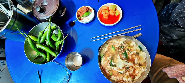 독특하게 어느 칼국수집이나 고추와 된장을 준다