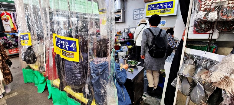 서문시장의 먹거리 서문시장은 다른 시장과 비교하여 먹거리가 풍부하다.작은 포장마차 같은 곳도 뒤로 먹을 수 있는 공간이 있다.메뉴도 다양하지만 그중 칼국수가 단연 대표적이다.특별한 장소로는 야시장이 있다.