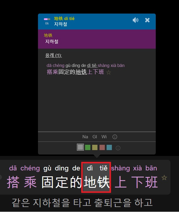 어휘 강조 표시 : 본인 희망 선택 – 저 같은 경우는 레벨 6일 때 가장 도움이 많이 되고 보통 레벨 6으로 변경해 보십시오.캡처 화면처럼 ↓↓↓ (탑승하다, dacheng)로 주요 단어 색상이 바뀝니다