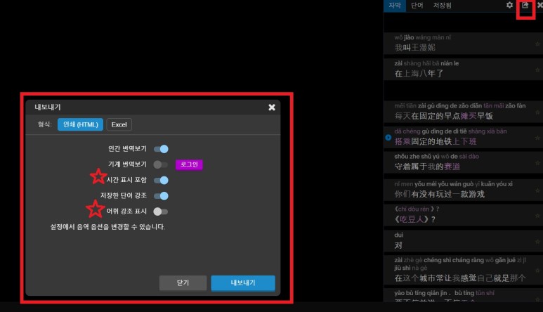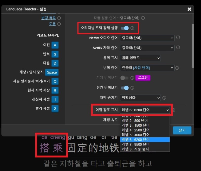 넷플릭스 중국어 외국어 자막 어휘 강조 단어 설정 방법