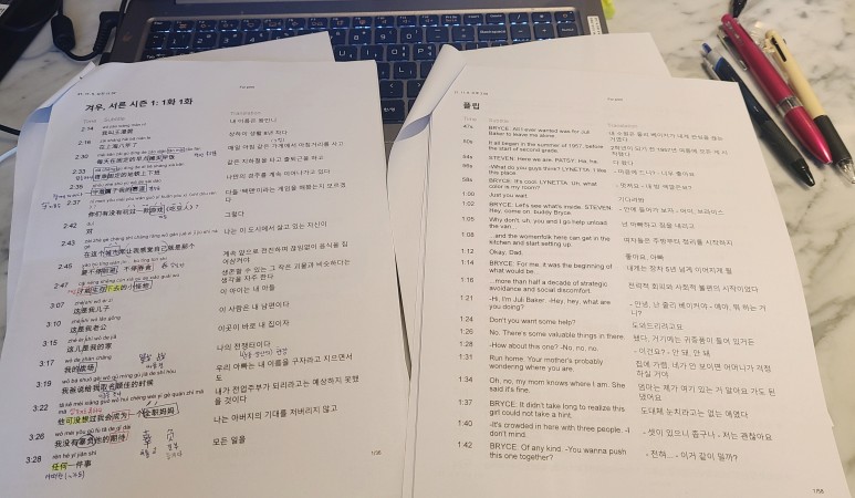 하지만 Language learning with Nexflix에서 “핑잉”이 포함된 자막의 대본을 다운로드 할 수 있습니다.
