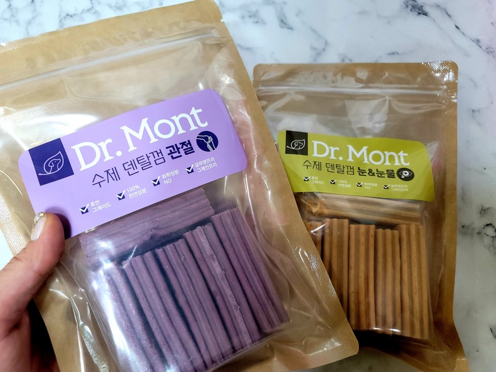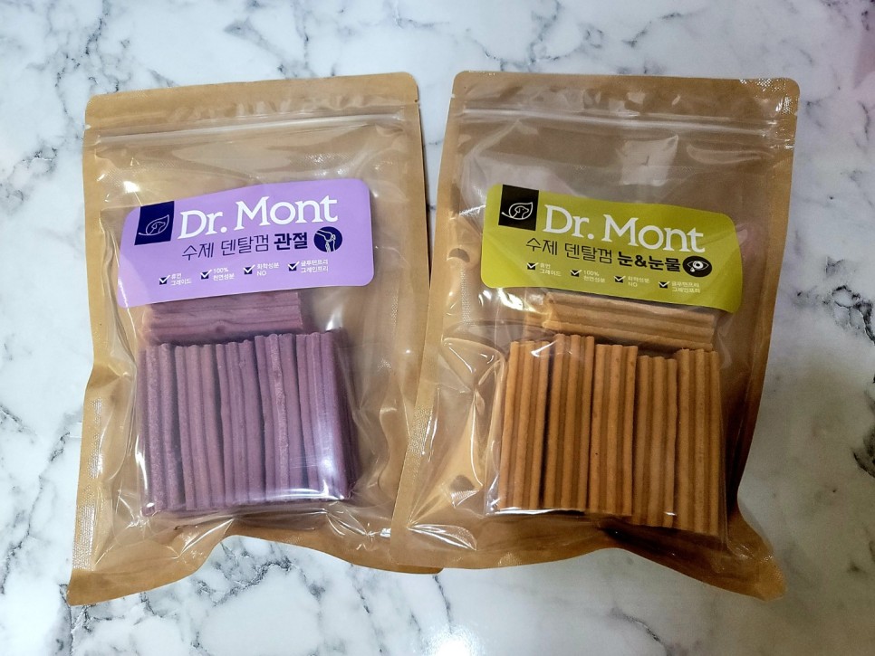 저만 혼자 간식을 먹을 수 없으니까!!! 우리 강아지 것까지 간식을 사셨다면서요?^^예전에 닥터몬트의 눈물의 영양제를 주문한 적이 있습니다. 너무 좋은 곳이라고 생각하고 간식도 사봤어요. 닥터몬트가 직접 만든 덴탈 껌이라고 해서 튜인의 느낌이었습니다.관절과 눈물에 좋은 음식을 먹을 수 있는 덴탈껌이라니…! 간식은 구매전후기를 잘 찾아봤는데 음식에 까다로운 아이들도 잘 먹는다는 것에 딱 맞아서 바로 득템!!!! 우리 강아지는 음식에 까다롭기로 유명해? 그러니까… 닥터몬트에서 나온 제품은 믿고 구입하게 되는 것 같아.화학성분이 들어있지 않은 100% 천연유래 성분이라니 굉장하네요!