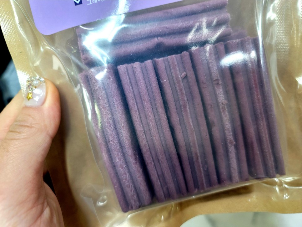 이렇게 뒤에 보시면 원자재 료를 보실 수 있습니다양고기에 녹립홍합, 가수분해단백질, 멸치, 블루베리, 명태, 바나나, 사과 등 내가 먹어도 괜찮을 것 같다.배고파 ㅋㅋㅋ 하루 권장량까지 친절하게 설명되네요! 저희 강아지는 소형견이라 한 개 두 개 주면 되겠네요.사이즈가 두꺼워서 하나 주면 딱 좋아요. 후후 조금 부드러운 츄 느낌으로 치아가 안 좋은 아이들도 잘 먹을 것 같았어요양도 생각보다 넉넉하게 12개의 스틱이 들어있어요~!