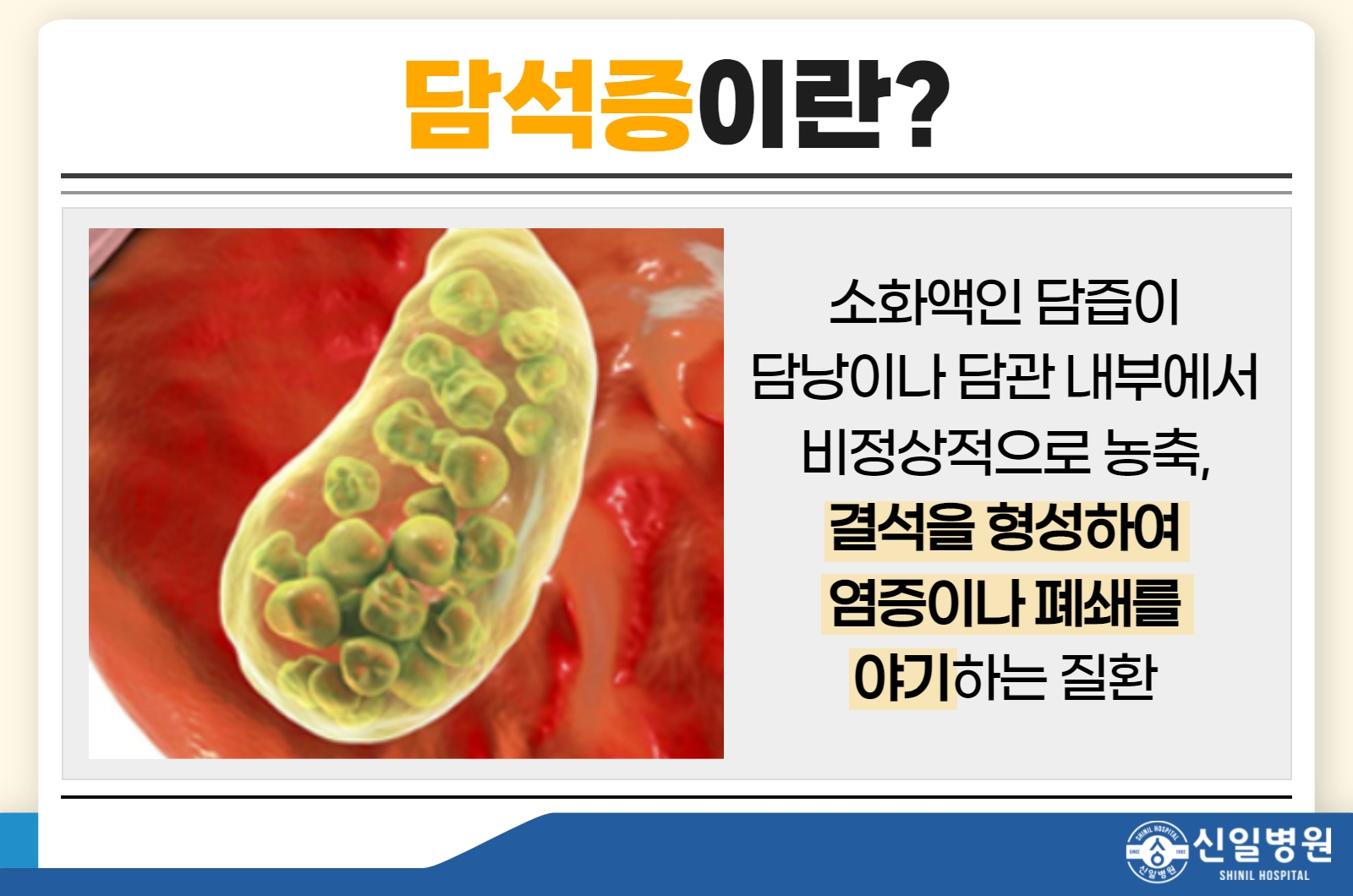 안녕하세요 노원구의 담석증을 치료하는 신일병원입니다