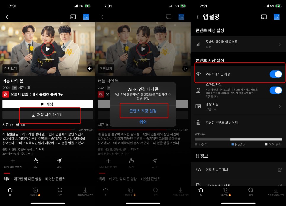 이럴 때는 넷플릭스 저장 기능을 이용하는 것이 좋습니다. 이 기능은 보고 있는 드라마나 보고 싶은 영화 등의 동영상을 스마트폰에 저장해 두는 기능입니다. 이렇게 하면 데이터 걱정도 없어요. 이제 넷플릭스의 저장 방법을 알아보겠습니다.