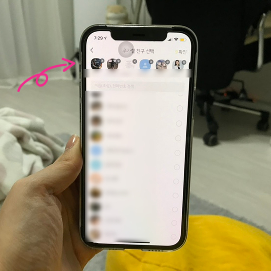 친구 1명씩 추가하면 상단에 1명씩 추가됩니다. 여기서 잘못 누른 친구가 있는지 확인하셔도 되고, 제대로 친구를 추가했는지 확인할 수 있어요.