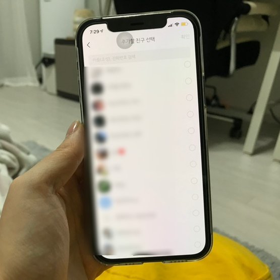 여기서 해당 프로필을 보여줄 친구를 설정해주세요. 검색하셔도 되고요. 전체 목록에서 하나하나 누르셔도 됩니다.