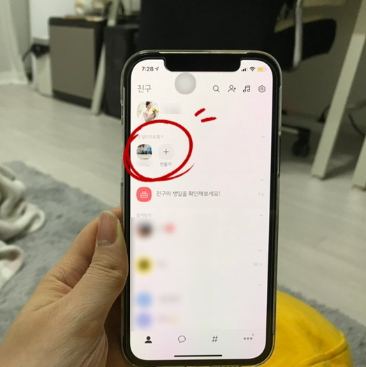 그리고 친구 리스트 화면으로 이동하면 기본 프로필 하단에 새로 프로필을 추가할 수 있는 칸이 새로 생깁니다. 저 플러스 부분을 눌러봅니다/