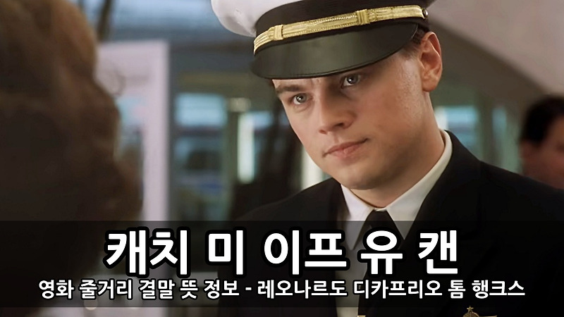 (오른쪽) 프랭크 에버그네일 주니어(출처:다음 영화) 먼저 이 영화를 보셔도 되는 분들을 먼저 알려드리겠습니다.- 처음부터 끝까지 눈을 뗄 수 없는 흥미로운 이야기를 보고 싶은 분.레오나르도 디카프리오의 명연기를 보고 싶으신 분.톰 행크스의 따뜻하고 깊은 연기를 보고 싶은 분.에이미 애덤스 팬.
