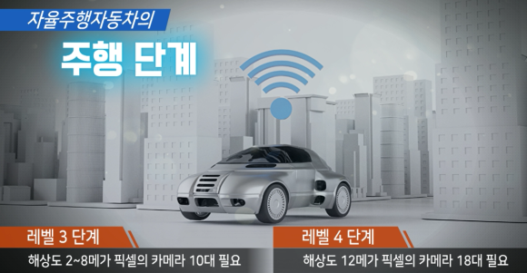 위의 정보와 같이 레벨 3부터 시작해야 자율주행이 가능합니다.4단계로 가려면 해상도 12메가 픽셀의 카메라 18대가 필요하다고 합니다.전후좌우 4대씩, 그리고 차 밖에서 2대.이렇게 되네요자율주행을 위해서는 카메라가 차량 안밖에는 도대체 몇 대나 필요한지 덜덜거린다.