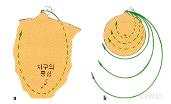 2. 인공위성의 원리면과 함께 수평방향으로 발사된 포탄이 형성하는 궤적의 형태로 설명할 수 있습니다.