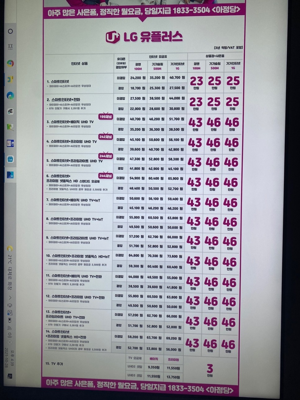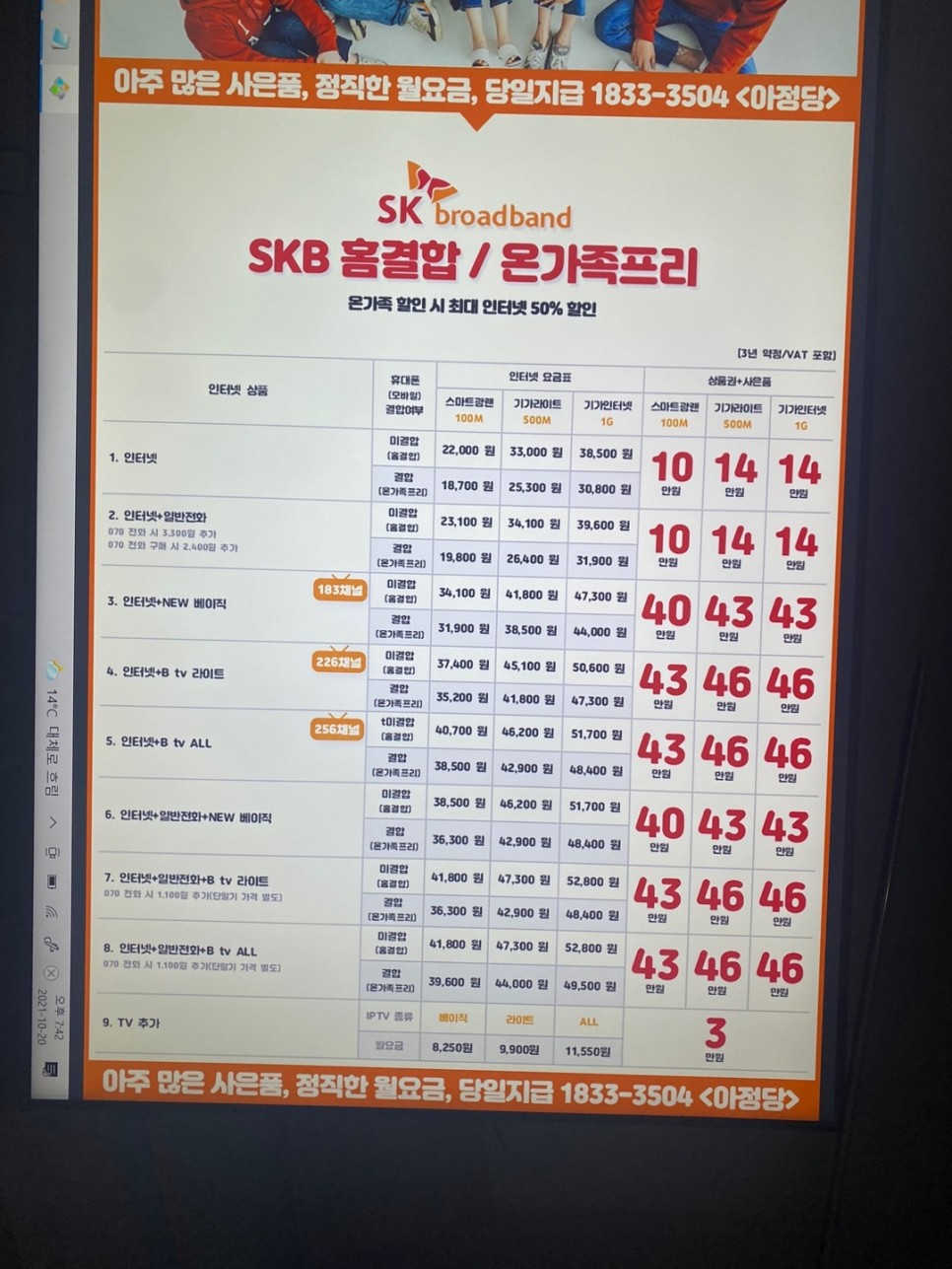 친구가 작년에 아종당을 통해 인터넷에 가입했는데 친절함, 사은품, 일처리에 모든 면에서 만족했다며 저한테도 상담해 보라고 추천해 주었어요!
