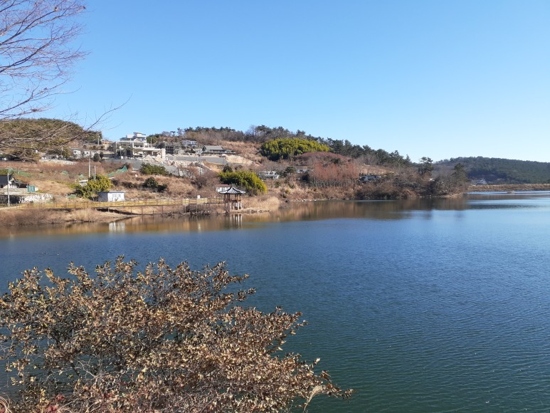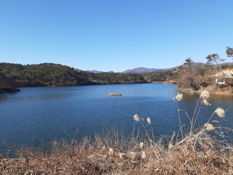 마근저수지의 좁은 계곡이지만 제법 큰 저수지가 마을 앞에 있다.