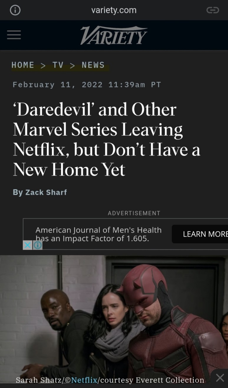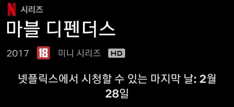 넷플릭스에서 시청할 수 있는 마지막 날 : 지난 2월 28일, 12월 개봉한 스파이더맨 노웨이 홈에 등장한 데어데블과 디즈니플러스에서 발매한 호크아이 마지막 에피소드에 등장한 킹핀에 대해 궁금증이 생겼다.그래서 지난 1월부터 넷플릭스 마블 드라마 시리즈를 처음부터 보는 와중에 화면에 이런 문구가 떴다.”넷플릭스에서 시청할 수 있는 마지막 날 : 2월 28일”