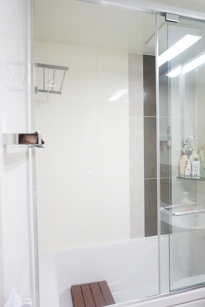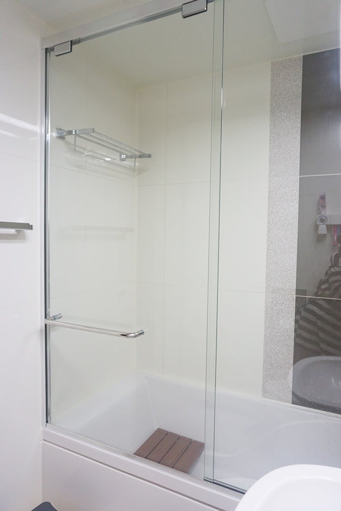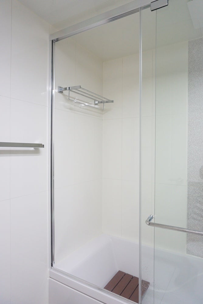 이런 화장실이요.저희가 도착한 시간 전에 미리 욕실을 깨끗이 청소해 놨네요.물건이 하나도 안 보여요.감사합니다。열심히 작업 시작해볼게요.샤워부스가 보여요.개폐유리문이 보이는 곳이 샤워부스입니다.문이 없으면 샤워 파티션입니다.