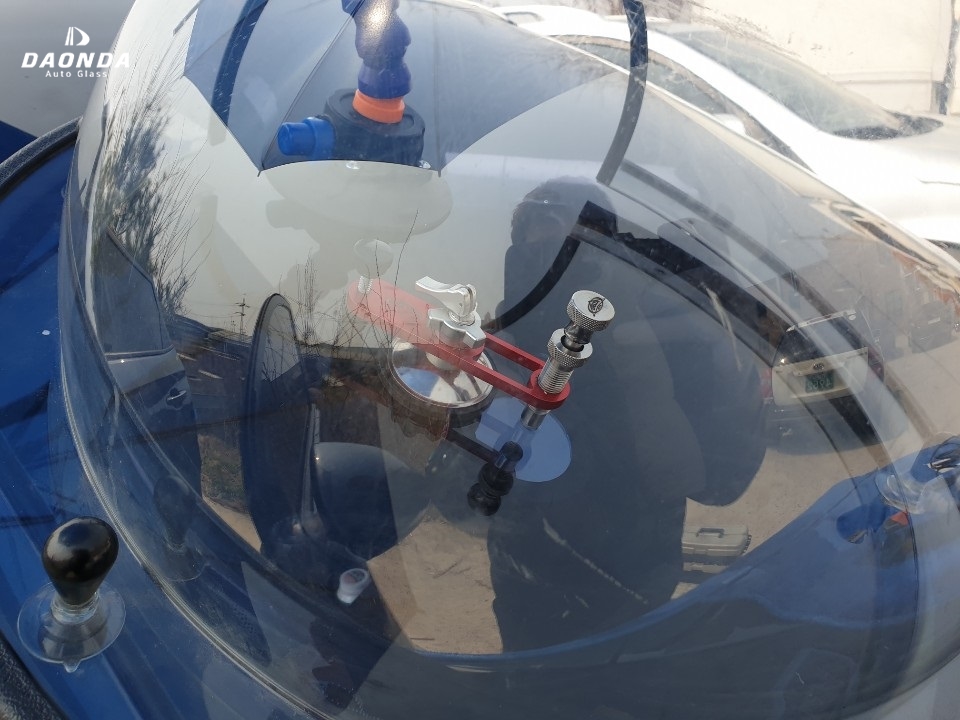 파손부위 확인 후 모양에 맞는 장비를 선택하여 유리표면의 오염물질 등을 제거합니다그 후 자외선 차단제를 설치하여 조기경화로부터 수지를 보호해 줍니다.출장 작업 시 자외선을 막는 차단막은 매우 중요한 장비로서 매뉴얼 수리 과정에서 꼭 필요한 과정 중 하나입니다.이렇게 실외 작업 중에 자외선으로부터 수지를 보호해 주지 않으면 작업이 완료되기 전에 레진이 서서히 경화되어 적절히 수리를 완료할 수 없습니다.