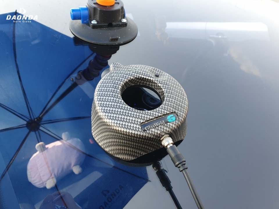균열 사이에 레진을 주입한 후에는 UV경화기를 사용하여 주입된 레진을 단단히 다져줍니다경화과정 또한 유리의 복원과정 중 매우 중요한 과정 중 하나로서 경화가 완료된 후에는 손상 전과 같은 유리 본연의 강도를 유지할 수 있습니다.경화 과정은 약 1~3분 소요