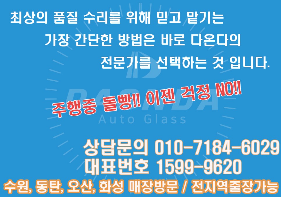 수원자동차 유리 복원 전면 유리 파손 수리 출장 시공기