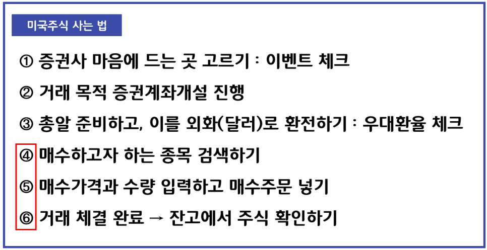 미국 주식이라 더 어려워 보이지만 국내 주식을 사는 과정과 크게 다르지 않은, 단지 환전 단계가 추가됐을 뿐이다.